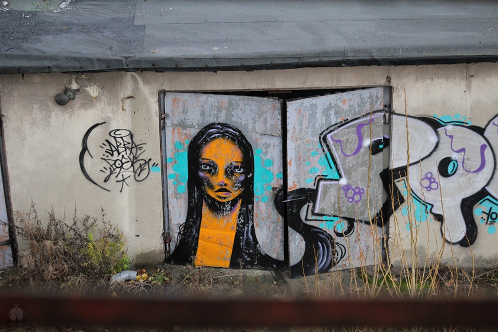 co to są "turkotki" /tak mawiał pewien kolega jeszcze w czasach podstawówki/ to wiem, ale "szewiot" to musiałem już sobie wyguglać... oczywiście to kwestia dobrania ujęć, ale faktycznie coś na kształt pewnej odmiany postapo, czyli po prostu niezły powojenny burdel w tych pomieszczeniach... a nad tym wszystkim unosi się duch tego miejsca w postaci damy, którą uwiecznił artysta grafficiarz... ale nie ona zdobyła moje serce, tylko nurkowózek marketowy, którego totemiczność przebija wszystko... bo mieszkańcy zielonego gołębnika już zdążyli uciec... rzecz jasna wiem, że to nie była żadna ferma drobiu mniejsze, ale spontaniczne skojarzenie było na tyle silne, żeby o nim wspomnieć... natomiast obecność "pryszcza" nie zrobiła na mnie wrażenia: gdzież się nie wnosiło kiedyś tego wehikułu, aby zrobić komuś pranka...